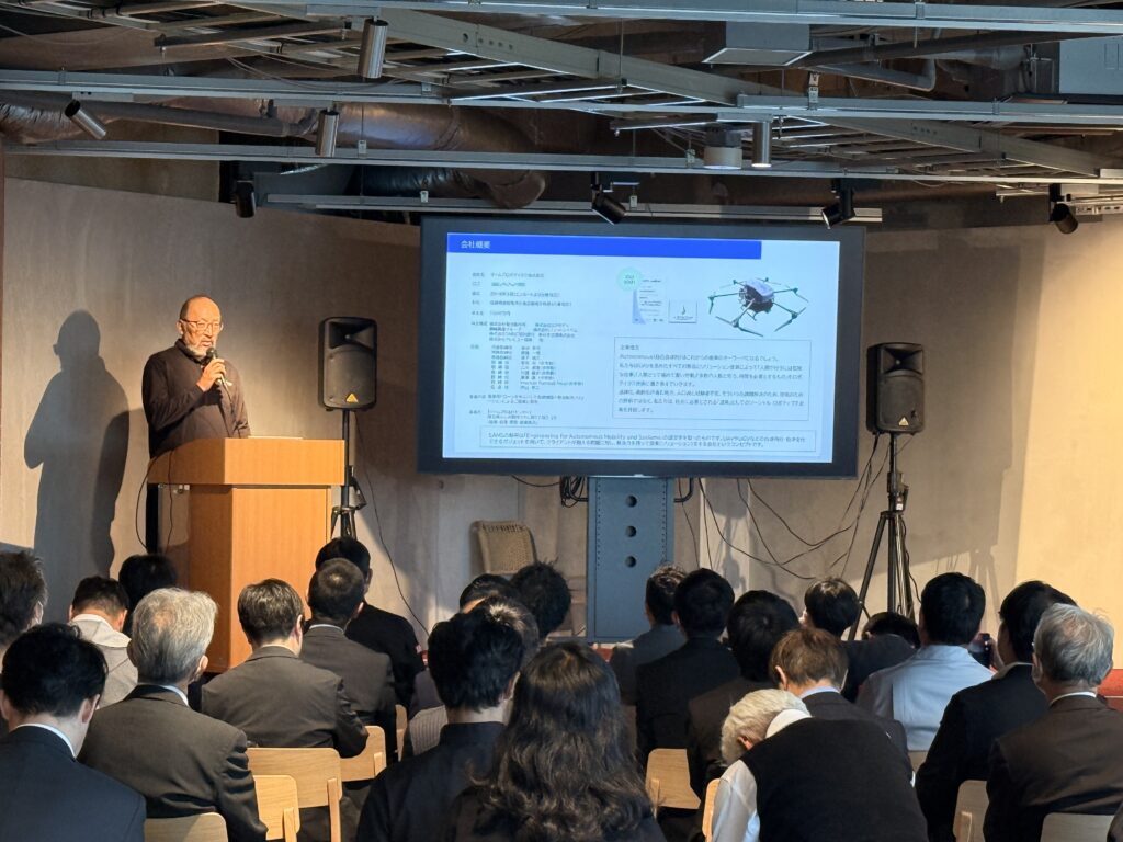 曽谷からは、イームズロボティクスの最新の取り組みや、型式認証に関する動向、また災害分野での事例などについて紹介しました。